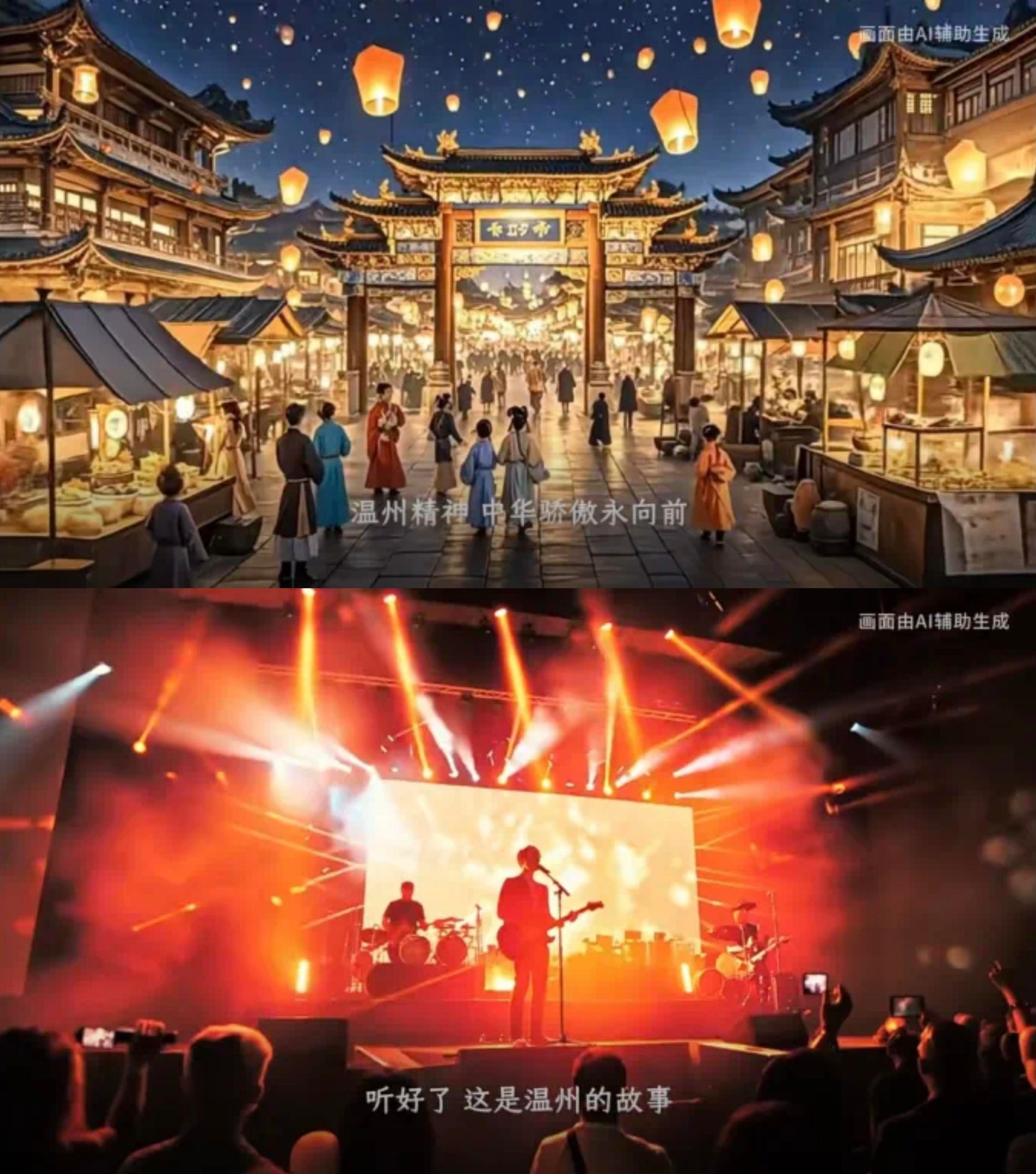 周洲淇同学可是个AIGC创作能人,他曾在温州市AIGC大赛中斩获一等奖,其作品《贰零壹陆》故事精妙、人物鲜活、设计出彩,而《琴棋书画见温州》更是完成了从学生作品到商业片的进阶。因为本片RAP部分的镜头节奏快,需要素材量更多,所以创作更具有挑战性和创造性。