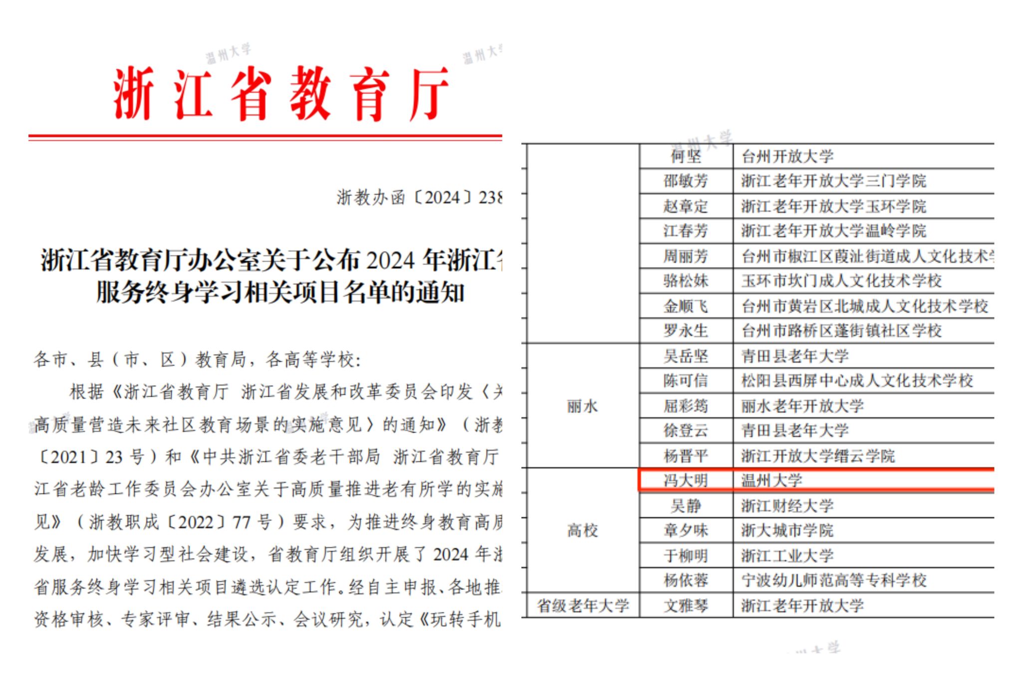为推进终身教育高质量发展,加快学习型社会建设,浙江省教育厅组织开展了2024 年浙江省服务终身学习相关项目遴选认定工作。近日,2024年浙江省服务终身学习相关项目认定结果公布,小宝影院 退休干部冯大明成功入选 “浙里美” 老年学习达人。