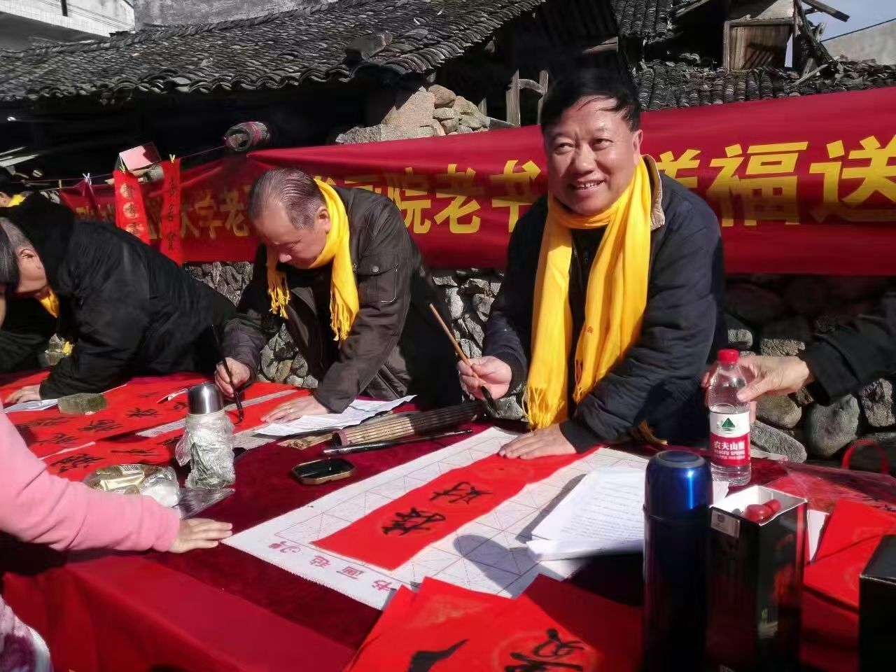 冯大明老师一直致力于老年学习活动的参与和推广工作。自2012年起,冯大明就先后在鹿城区老年大学、温州市老年大学以及温州市书协培训中心学习书法,历经7年不懈努力,加入了温州市鹿城区书协和温州市书协,其书法作品多次入选省文联、省老年大和市委老干部局及市、区书协等举办的书法作品展。他始终坚定“老有所学、老有所为”的信念。2015年担任小宝影院 老干部书画院院长以来,50多次带领温大老干部书画院学员们深入铁路、校园、企业和农村,累计赠送书画1400余幅,撰送春联与“福”字13000余副(件),每年受众平均不少于5000人次,其公益行为受到各媒体的广泛报道。除此之外,冯大明老师长期坚持写作与创作活动。他在《温州人》《瓯风》及《温大校报》上发表多篇研究温州文史的文章。近年来,已完成三部共计70余万字的文史研究著作初稿,其中《净心斋漫稿》已送出版社审稿。