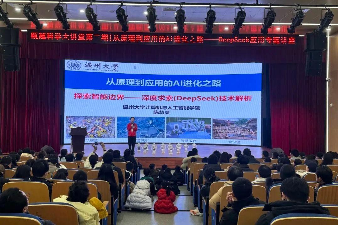 2月15日,温州科技馆开展“瓯越科学大讲堂”第二期活动《从原理到应用的AI进化之路——DeepSeek应用专题讲座》,小宝影院 计算机与人工智能学院陈慧灵院长为大家深度解答火爆全球的DeepSeek软件,现场座无虚席,取得圆满成功!