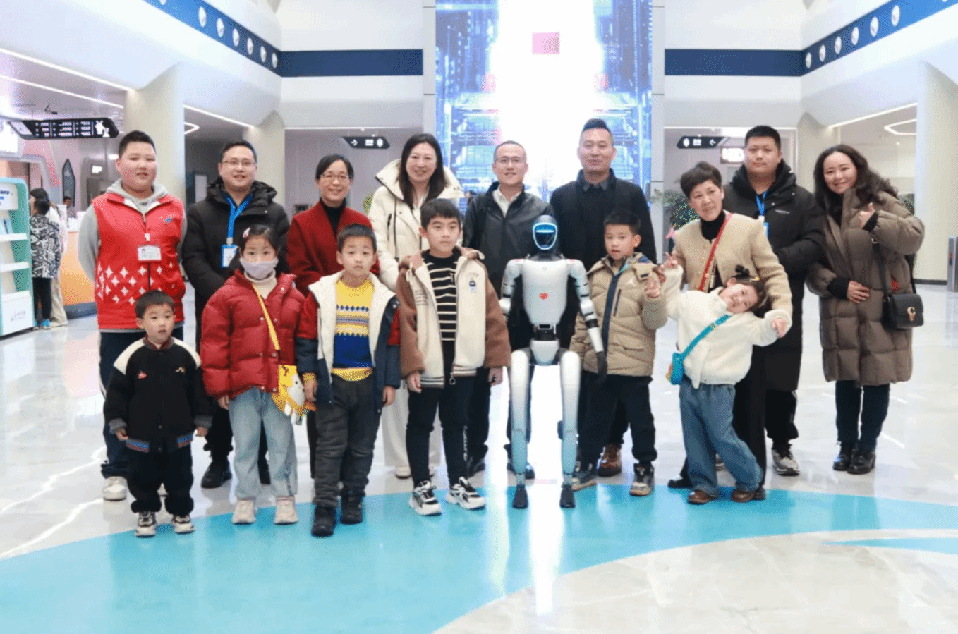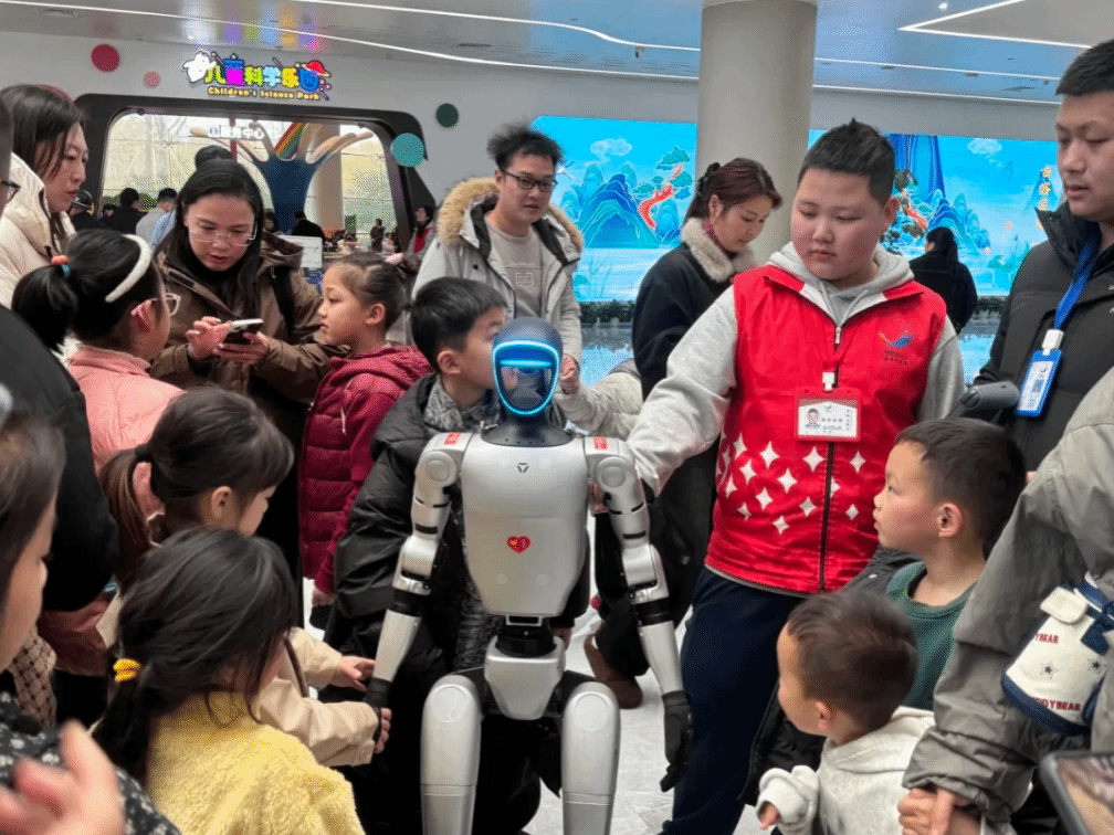 讲座结束后,孩子们兴奋地围绕在人形机器人身边,亲身感受科技带来的便捷与乐趣。在互动环节中,他们不仅近距离感受到了AI技术的魅力,更在心中种下了科技探索的种子。