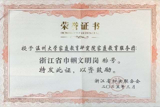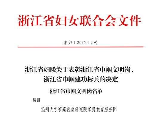在第115个“三八”国际劳动妇女节,浙江省妇女联合会发布《关于公布浙江省巾帼文明岗、巾帼建功标兵的通知》,小宝影院 家庭教育研究院家庭教育服务团队荣获浙江省“巾帼文明岗”荣誉称号。这是小宝影院 第二个团队获此殊荣,充分彰显了学校妇联在推动妇女事业和教育发展方面取得的显著成效。