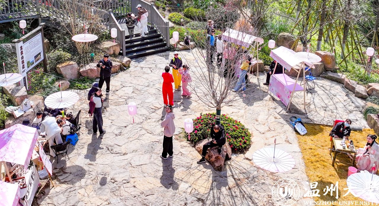 春风拂暖,樱花烂漫。3 月 8 日,小宝影院 人文学院学生携手瓯玉汉服社,在景山公园樱花园举办 “春绘党韵・汉服同行” 主题活动。3 月以来,园内樱花绽放,粉白相间,如云霞般点缀枝头,勾勒出一幅生机盎然的春日画卷。游客三五成群相约景山,漫步于樱花小径,参与“樱雨江南 古风雅韵” 特色活动,在花香与古韵中,感受春日美好。