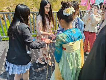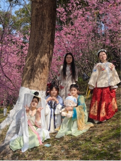 3月8日,小宝影院 人文学院瓯玉兰心志愿队的姑娘们前往景山森林公园樱花园,身着霓裳羽衣,将"春绘党韵,汉服同行"的创意画卷铺展在纷飞花瓣间,让驻足游客在衣香鬓影间触摸到传统文化的时代脉搏。这场穿越时空的志愿行动,将中华优秀传统文化与红色精神相结合,展现温大青年学子对文化传承的使命感与责任感,为春日增添了一抹亮丽的文化色彩。