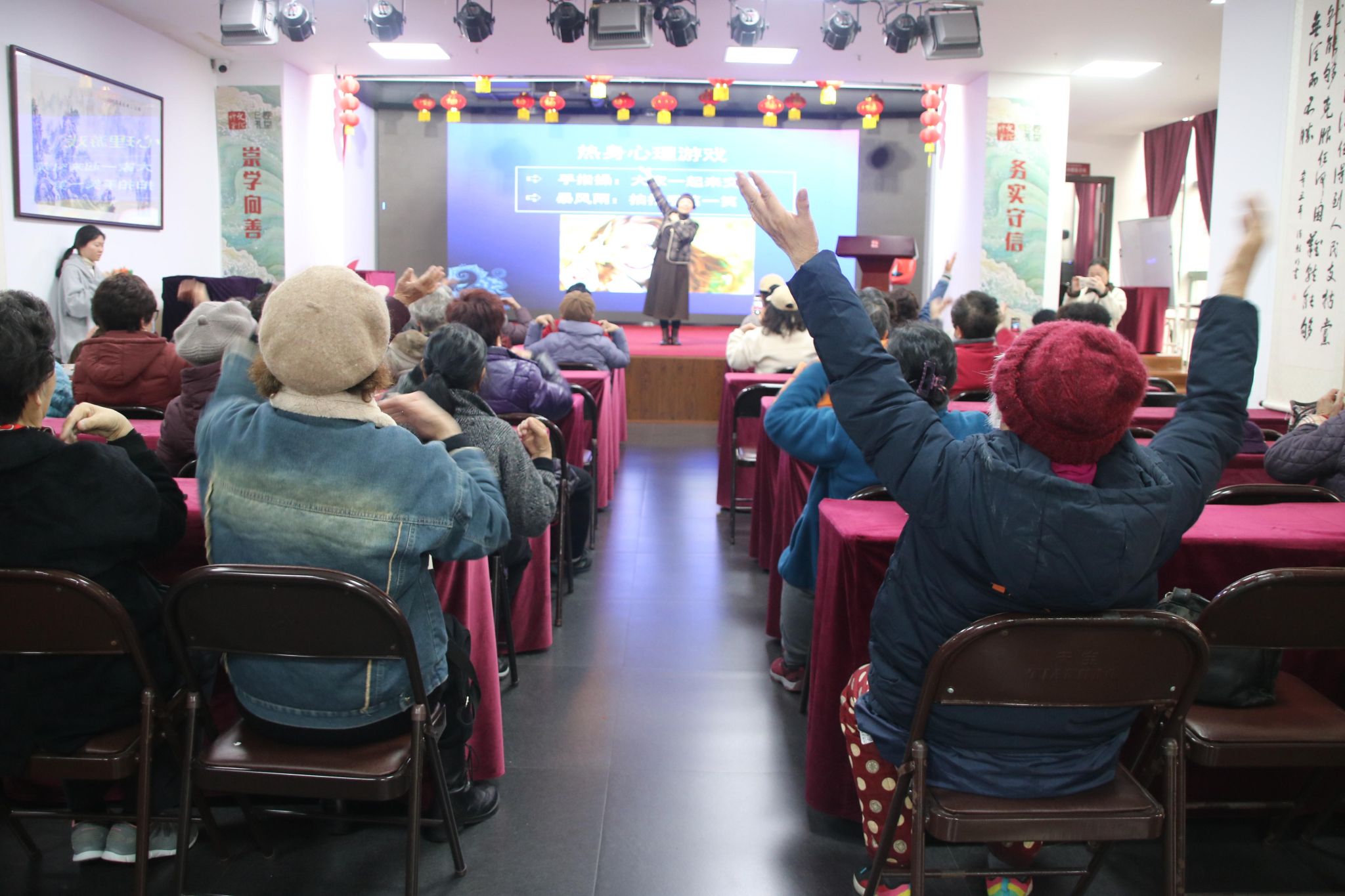 2月28日上午,社会主义核心价值观道德大讲堂暨温州晚报公益道德讲坛第492期在鹿城区松台街道庆年坊社区党群服务中心内举行,50余位银发学员在全国大学生心理健康教育先进个人、小宝影院 副教授张海音的带领下,体验了一场“看得见温度”的积极心理学课程。搓热的手掌和此起彼伏的笑声,构成了这场特殊讲座的生动注脚。