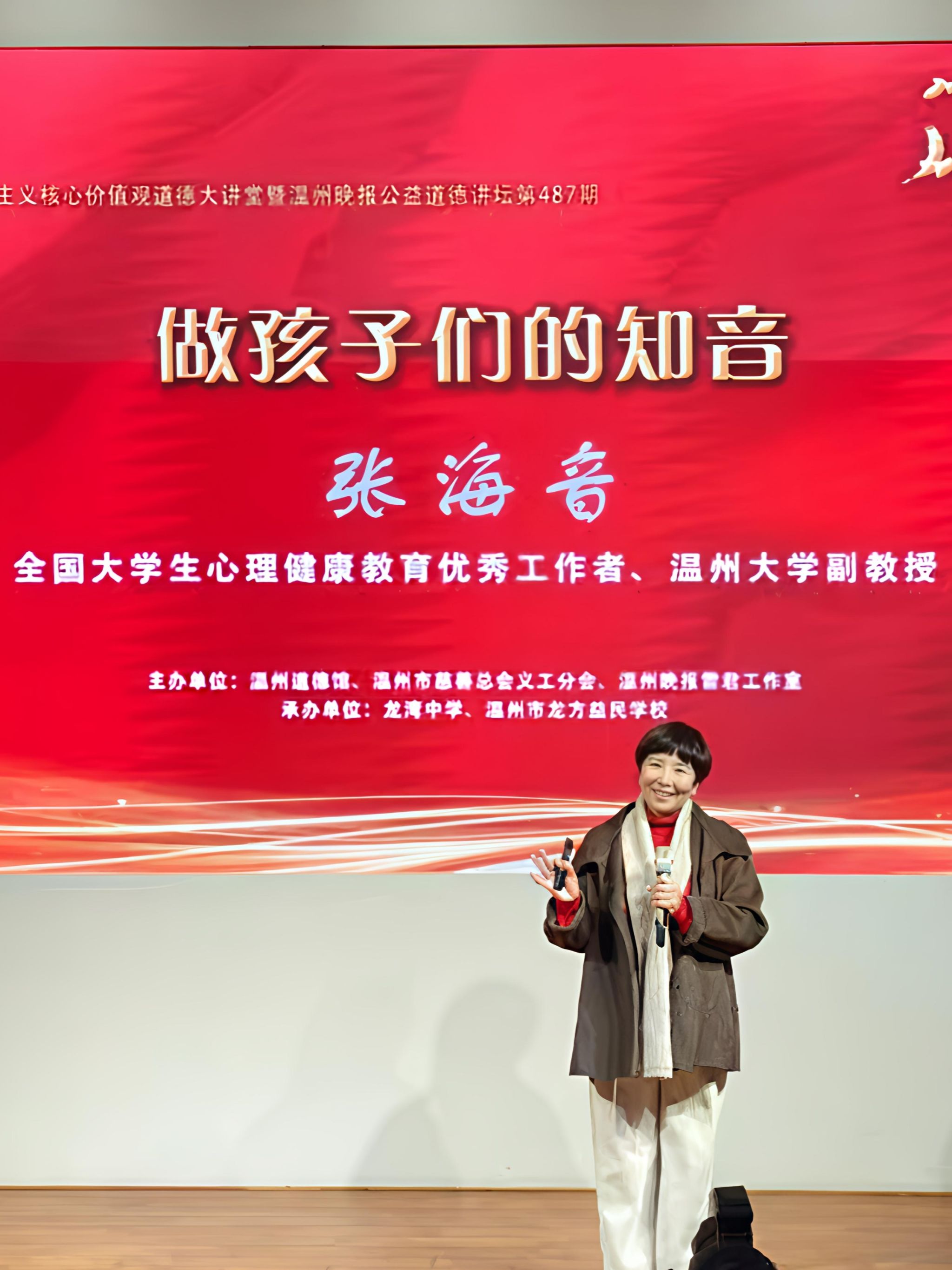 张海音说,“作为一名心理教师,在近25年的高校心理咨询职业生涯中,我深刻体会到这份工作的责任与使命,也深刻感受到这是一份挽救生命的工作。每当成功帮助求助者解决疑难问题,我便越发能体会到心理援助工作的价值,内心也充满幸福感。感谢大家的信任,我会与时俱进,传递幸福与爱,愿自己能成为一束光,给人希望,予人力量,尽显世间美好。”
