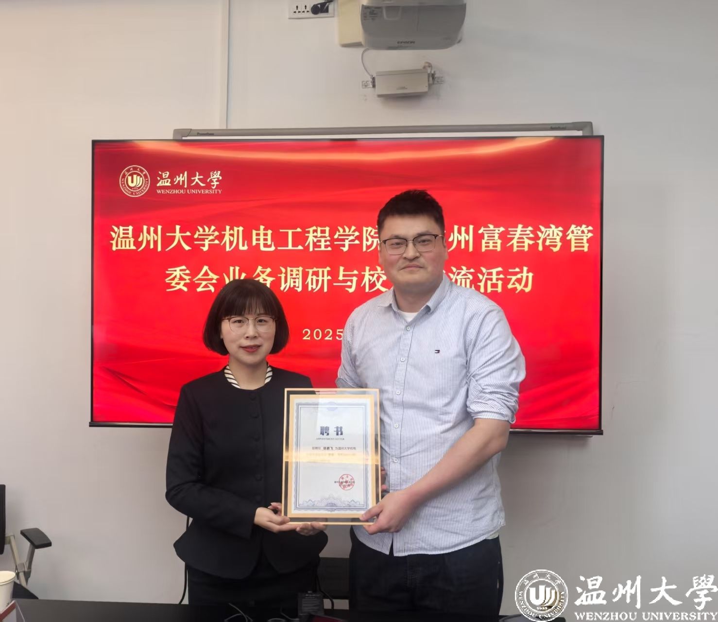 双方围绕校地共建、项目合作、人才共育等议题展开交流。同时,现场为徐鹏飞校友颁发学院校友理事会理事聘书。