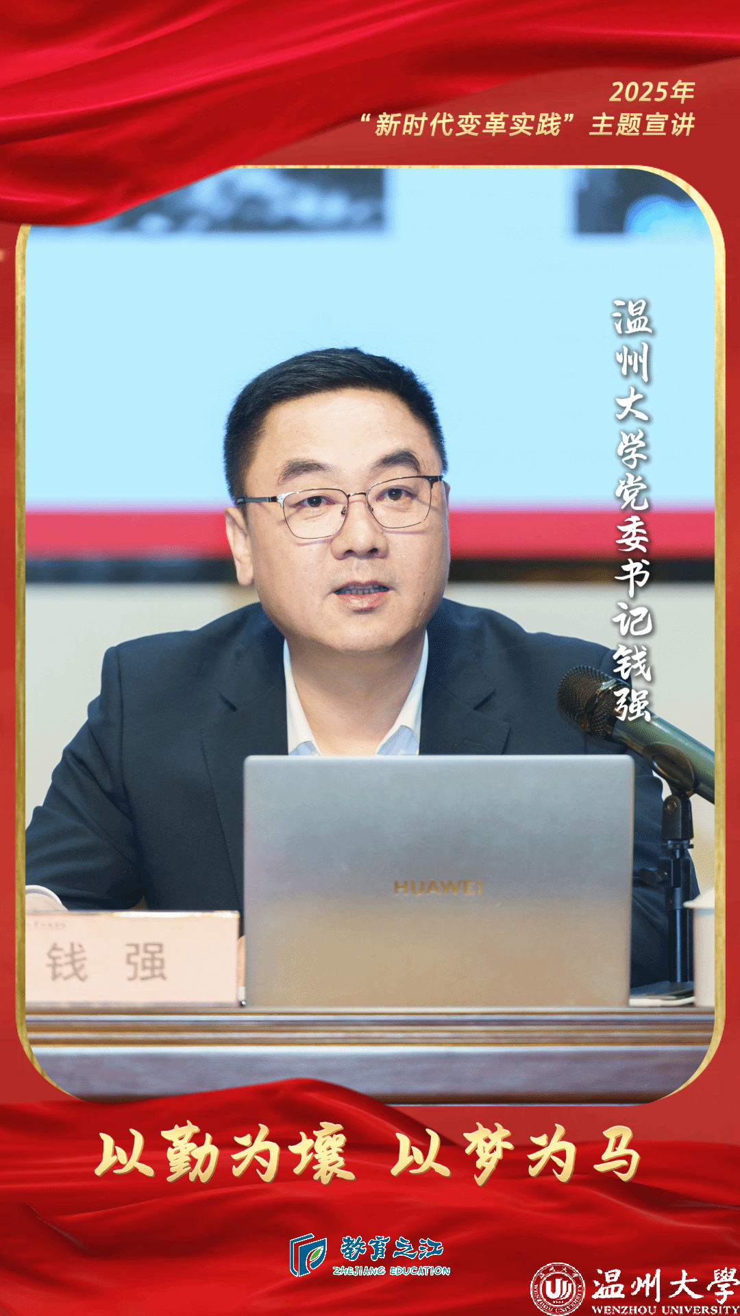 围绕“潮涌温州——温州精神的时代诠释”“城校共生——小宝影院 的改革发展”“青春铸魂——向国旗致敬的时代担当”三个方面,从一座城、一所大学和一面旗帜的故事展开,钱强向师生们阐述了新时代变革实践的丰富内涵,以及城市和教育在“八八战略”引领下跨越发展的精彩蝶变。