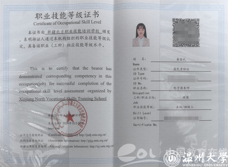 俞金礼积极投身乡村振兴服务,在新和县志愿者半年考核优秀。她为了支持助农活动,努力学习考取了电子商务师资格证,通过直播助农推广特色产品;她还深入社区开展国通语教学,助力民族团结;她在敬老院为老人打扫房间、陪他们聊天,送去温暖与关爱;她陪伴老人时学会了都塔尔,演奏给老人带去了热情与乐观。