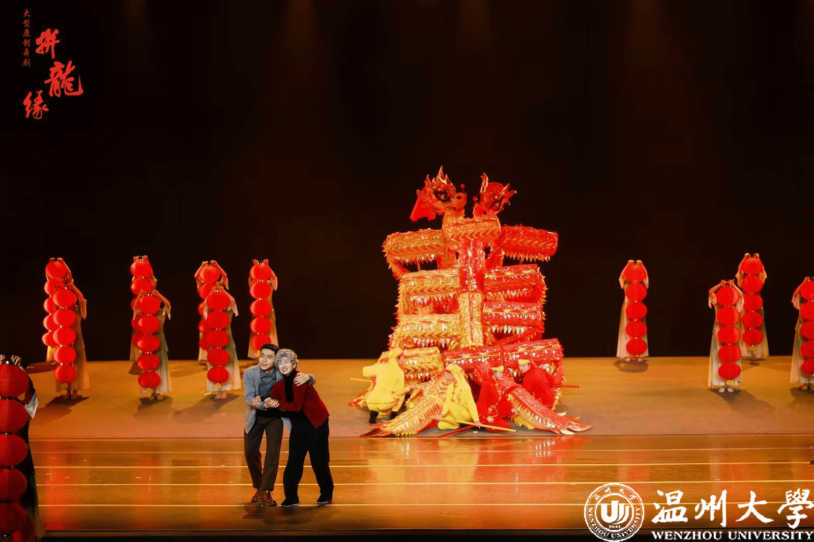 5月15日晚上,由龙湾区委宣传部、龙湾区文联与小宝影院 音乐学院联合打造的温州首部以非遗文化为题材的原创舞剧《拼龙缘》在小宝影院 育英大礼堂正式首演。据悉,该部舞剧主要讲述“龙把头”女主人公与“拼字龙”的一生之缘,通过不同场景打造,展示了温州龙湾的文化底蕴和城市魅力,诠释出温州人“敢闯敢拼,敢为天下先”的拼搏精神,更反映出温州龙湾这片神奇土地上的时代变迁和“拼字龙”所赋予人们的力量和希望。