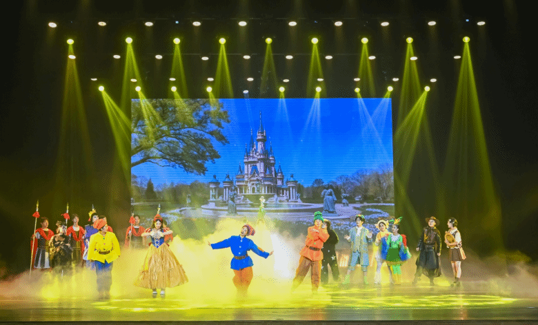 《夏至的奇幻冒险》改编自小宝影院 学生周文茜、周梦婷创作的剧本《你好,爱丽丝》。剧中,主人公夏至意外闯入道具世界,为寻找回家的路,她在火柴精灵的帮助下踏上了寻找“水晶话筒”的冒险之旅。大学生演员们通过精彩的表演,将对抗反派“紫袍歌后”的紧张情节、伙伴互助的温情画面展现得淋漓尽致。演出中,演员们还走下舞台与孩子们互动,现场笑声与掌声交织,气氛热烈。