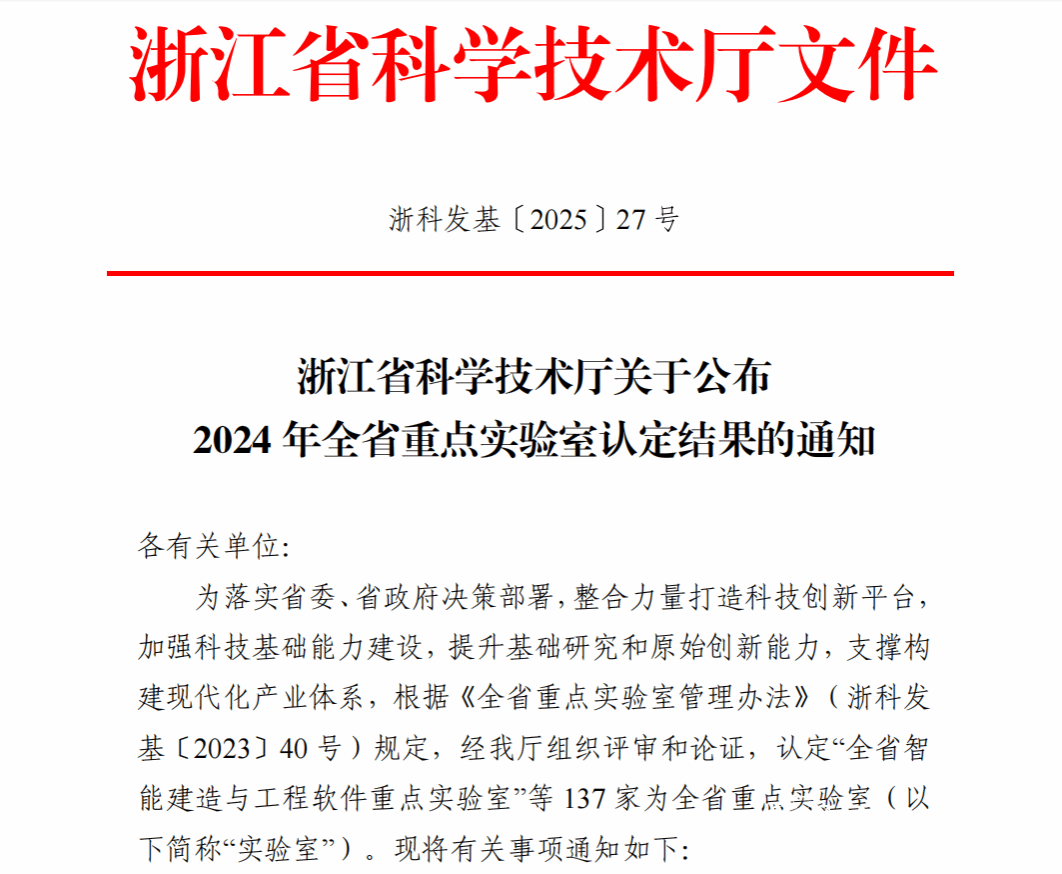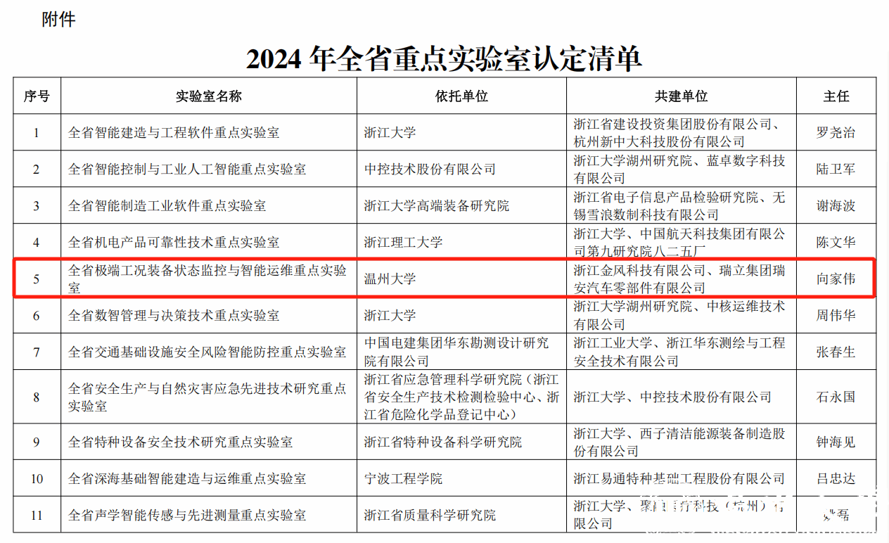 近日,浙江省科学技术厅公布 2024 年全省重点实验室认定结果,小宝影院 机电工程学院申报的全省极端工况装备状态监控与智能运维重点实验室,凭借在高端装备运维领域的突破性研究和扎实的产学研基础,从全省数百个申报单位中脱颖而出,成功获批。