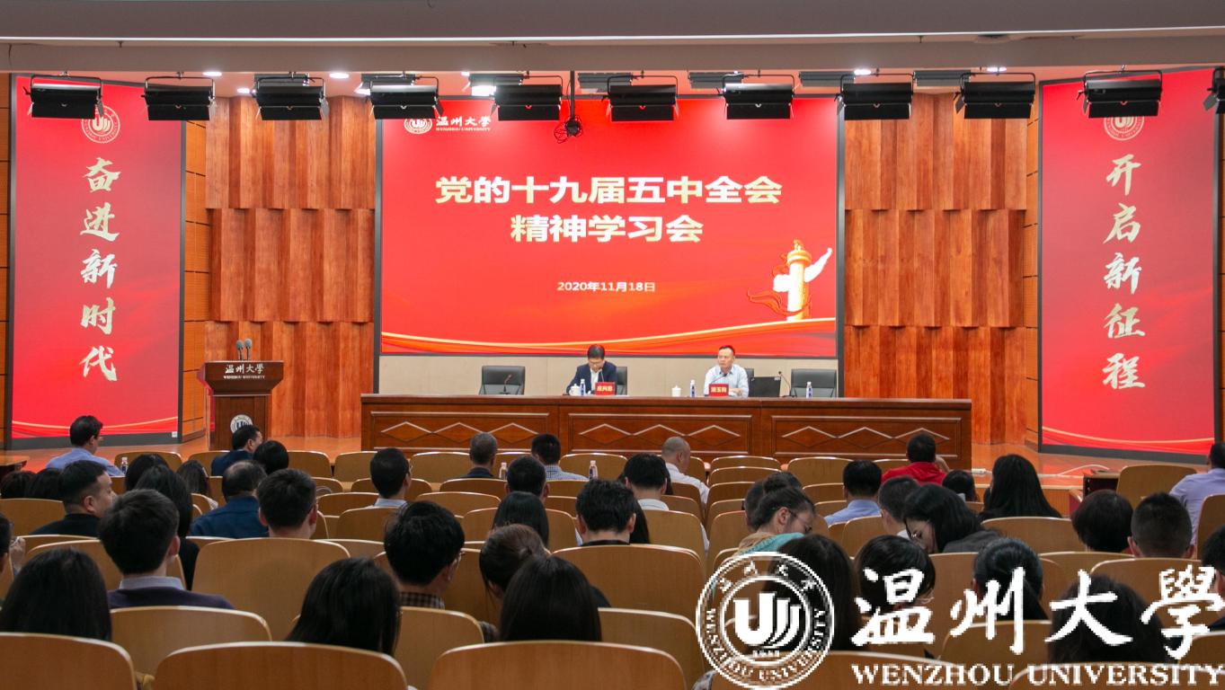 会议强调,全校各级党组织要抓好学习宣传,把学习贯彻党的十九届五中全会精神摆在突出位置,迅速掀起学习宣传贯彻的热潮。学习宣传贯彻党的十九届五中全会精神,是学校当前和今后一个时期的重大政治任务,各级党组织要提高政治站位,深刻把握党的十九届五中全会的基本精神和重大意义,把思想和行动统一到全会精神上来。要把学习贯彻党的十九届五中全会精神与贯彻落实习近平总书记关于教育的重要论述、重要批示指示精神相结合,推进学校各项发展改革任务。要全力推进“十三五”收官,将学习贯彻十九届五中全会精神与做好年底各项重点工作紧密结合,压实责任,推动如期高质量完成全年任务目标,确保“十三五”圆满收官。要将全会提出的“十四五”时期经济社会发展目标与学校的发展目标结合起来,精心谋划学校“十四五”规划,研究出台既有战略思维又务实管用、既体现新发展理念又解决实际问题的高质量的学校“十四五”规划,在“重要窗口”建设中贡献更多温大力量。
