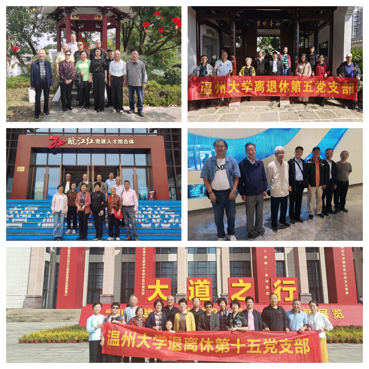 协助各支部通过实地研学、参观见学等方式开展考察调研,并计划陆续对接“循迹溯源学思想促践行”示范点开展现场学习。离退休第三党支部在平阳温师旧址进行主题教育集中理论学习的同时,开展“走看促”活动,先后参观小宝影院 平阳智能制造研究院、温师旧址纪念馆的“黄溯初专题馆”和“浙江省立温州师范学校旧址陈列馆”。离退休第五党支部赴位于九山湖畔的松台别业开展主题党日活动。离退休第九党支部赴三垟湿地在习近平总书记亲自栽种的大榕树下开展“循迹溯源学思想促践行”主题党日活动。离退休第十一党支部开展热学热议习近平总书记考察浙江重要讲话精神之后,组织党员同志们参观温州市规划展示中心。离退休第十五党支部赴浙江展览馆参观“大道之行——‘八八战略’实施20周年大型主题展览”。各支部在考察调研中不断加深对党的创新理论的理解,将理论学习向实践运用进行转化,在深学细悟中提高理论素养、坚定理想信念、升华觉悟境界。