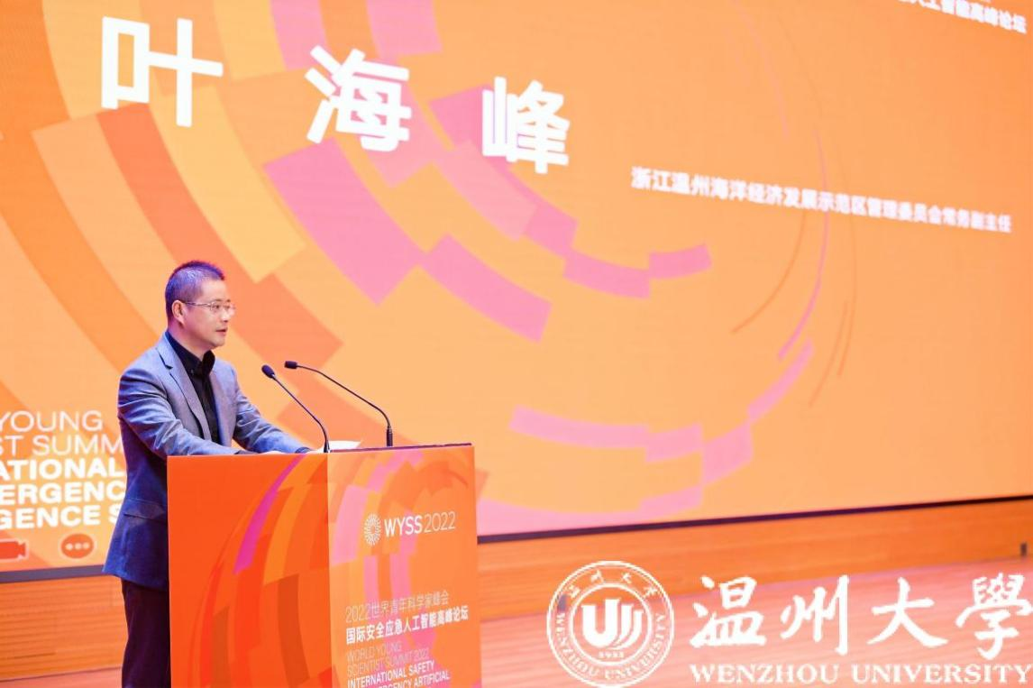 On December 11, the World Young Scientist Summit (WYSS) 2022 - International Safety and Emergency Artificial Intelligence Summit was successfully opened in Wenzhou Marine Economic Development Demonstration Zone (MEDDZ) . This summit was hosted by Zhejiang Association for Science and Technology (ZAST) and Wenzhou Municipal People’s Government, and organized by WZU/College of Computer Science and Artificial Intelligence of WZU and Wenzhou MEDDZ Management Committee. Zhang Xiaoqin, member of the Leading Party Members Group and Vice Chairman of ZAST, Xu Hekun, member of the Party Committee and Vice President of WZU, Ye Haifeng, Deputy Secretary of the Party Working Committee and Executive Deputy Director of Wenzhou MEDDZ Management Committee, and Yu Chuang, President of Zhejiang Industry and Trade Vocational College, attended the opening ceremony and delivered speeches.