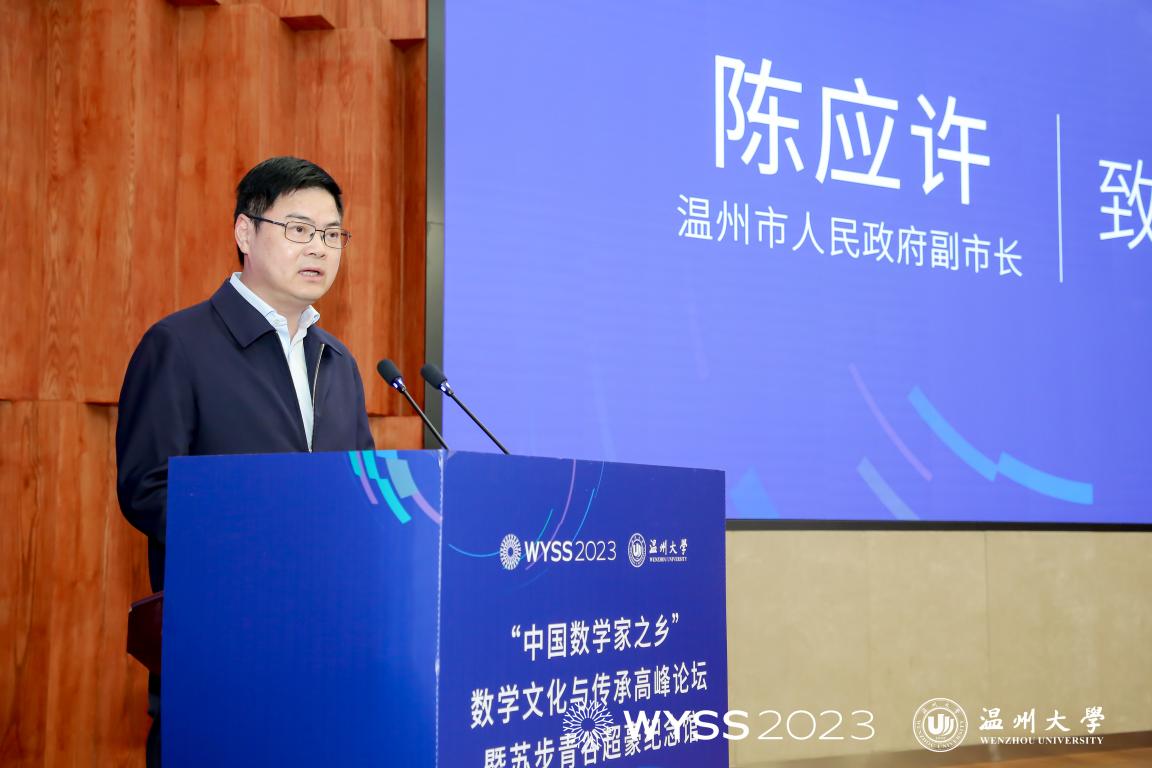 Then, Chen Yingxu also delivered a speech. On behalf of the Wenzhou Municipal People’s Government, he extended a warm welcome to the academicians, experts and guests, and expressed his heartfelt thanks to the leaders and people from all walks of life who had long cared for and supported Wenzhou’s reform and development. He said that Wenzhou was known as the “Hometown of Great Scholars in Southeast China”, the cradle of Chinese mathematicians and the hometown of mathematicians. It has been making constant endeavors to fortify its image as the “hometown of mathematicians” in the new era. For example, it created various platforms such as the World Young Scientists Summit, the China Mathematics Education Seminar, the Wenzhounese Mathematicians Research Center and the Gallery of Wenzhounese Mathematicians, and introduced the Construction Programme of Wenzhou Mathematicians’ Home. It gave full play to its rich resources of Wenzhounese mathematicians, and accelerated the introduction of a slew of mathematicians at home and abroad. In his speech, Mr. Chen suggested to gather the strongest brains to strengthen Wenzhou’s basic research in mathematics, to concentrate the greatest resources to help Wenzhou train mathematical talents, and to converge the best talents to build Wenzhou into a highland of talent innovation. He looked forward to the helping hand and support from academicians and experts to jointly polish Wenzhou’s image as the “hometown of mathematicians”.