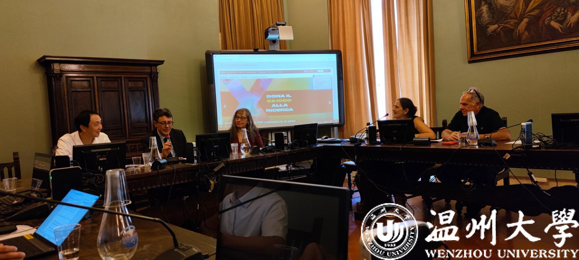 To enhance the cooperation in the higher education between China and Italy, and in particular, the cooperation between Wenzhou University and the University of Siena, Zhang Jian, Secretary of the Party Committee of Wenzhou University led a delegation to visit the University of Siena in Italy on August 25, 2023. The delegation also included Xia Chunyu, Director of the Strategic Development Office, Huang Wenhao, Director of the International Relations Office, Bao Hanli, Dean of Overseas Chinese College, and Wu Mingge, Director of the Experimental Center of the College of Mechanical and Electrical Engineering.