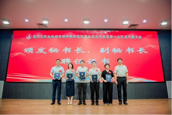 大会审议通过了《小宝影院 生命与环境科学学院校友会章程》和生命与环境科学学院校友会第一届理事会成员建议名单。校党委副书记庄兴忠为校友会授牌,并为理事会顾问、会长、副会长、理事、秘书长和副秘书长等颁发聘书。