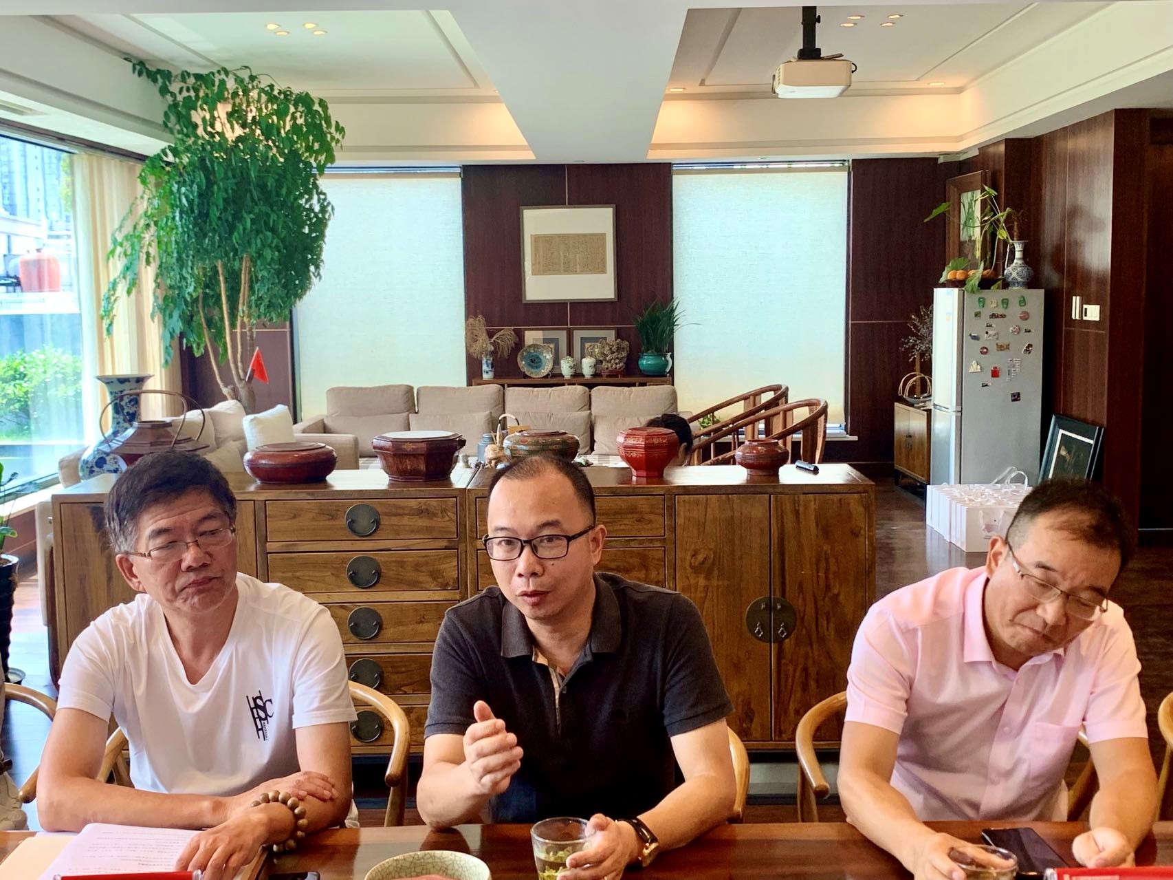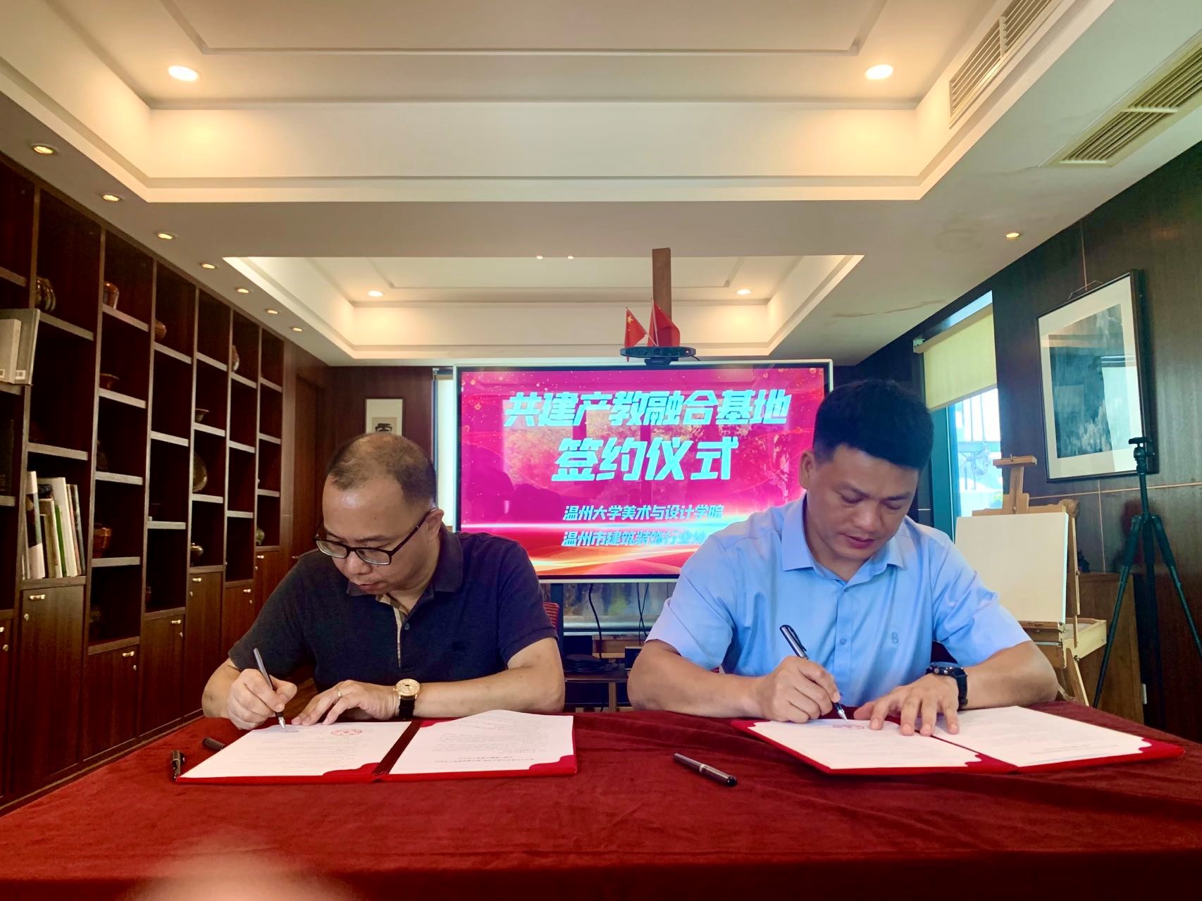 美术与设计学院优秀校友、浙江视野建设集团有限公司董事长、温州建筑装饰行业协会会长杨越嶂对母校领导郑信军一行来访表示热烈欢迎,并对温州建筑装饰行业和企业的发展情况、以及近年来的人才发展与需求情况进行了介绍,也表达了希望能与母校共同加强人才共育、项目共建方面深度合作的意愿。