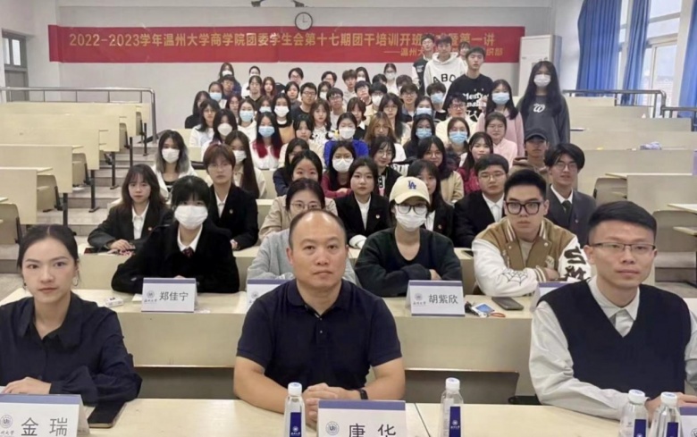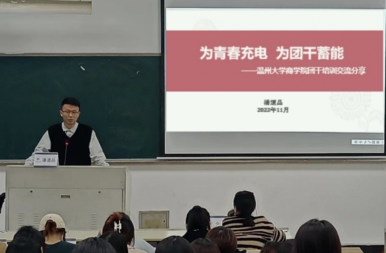 当天,小宝影院 商学院同期举办了第十七期团干培训开班仪式暨第一课,由招商银行温州分行团委书记潘道品为团学干部讲授“为青春充电,为团干蓄能”主题团课,以自身的大学和职场经历,为团学干部分享经验并提出建议。