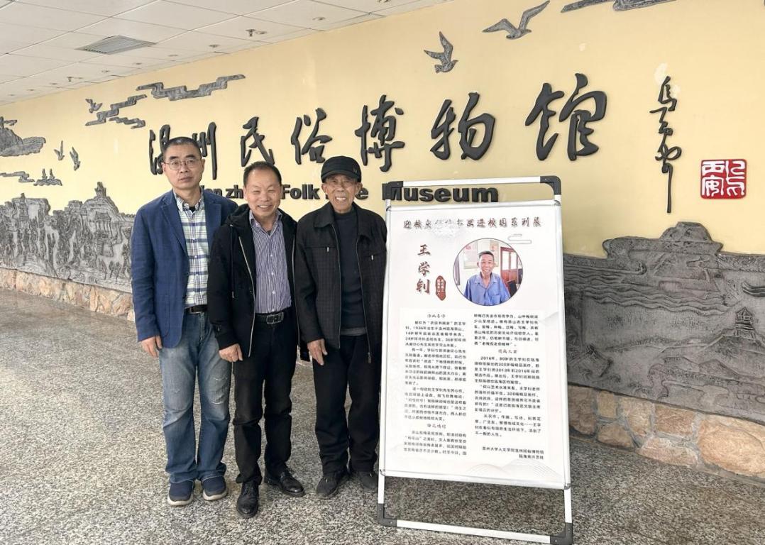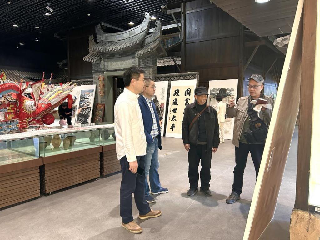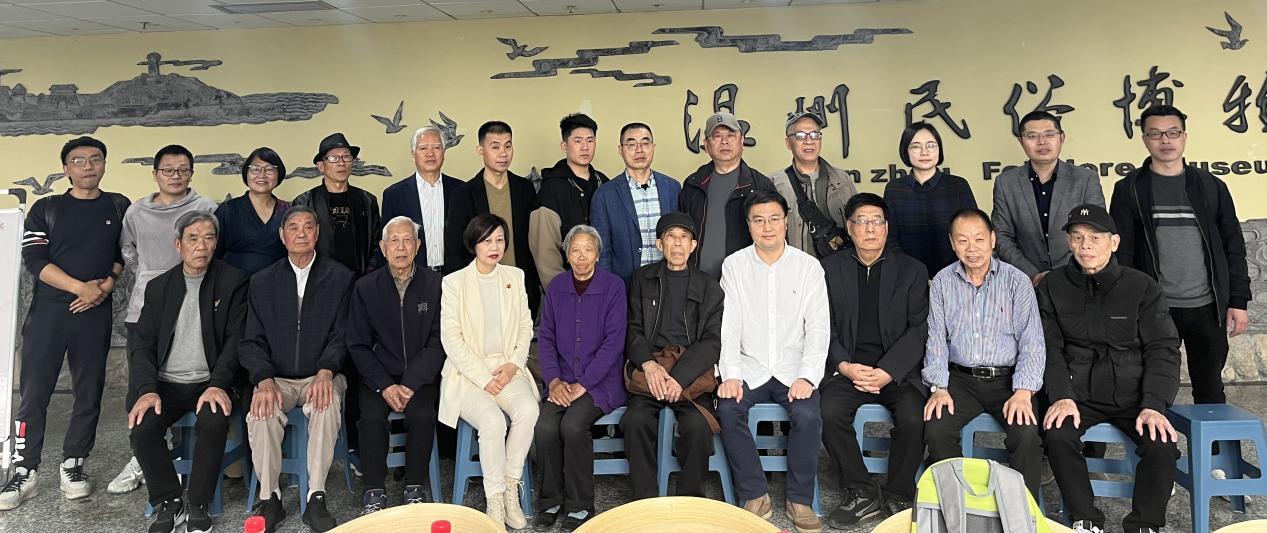 泉川艺社社长、茶山街道新乡贤联谊会秘书长王大普、“农民书画家”王学钊与小宝影院 温州民俗博物馆万军合影