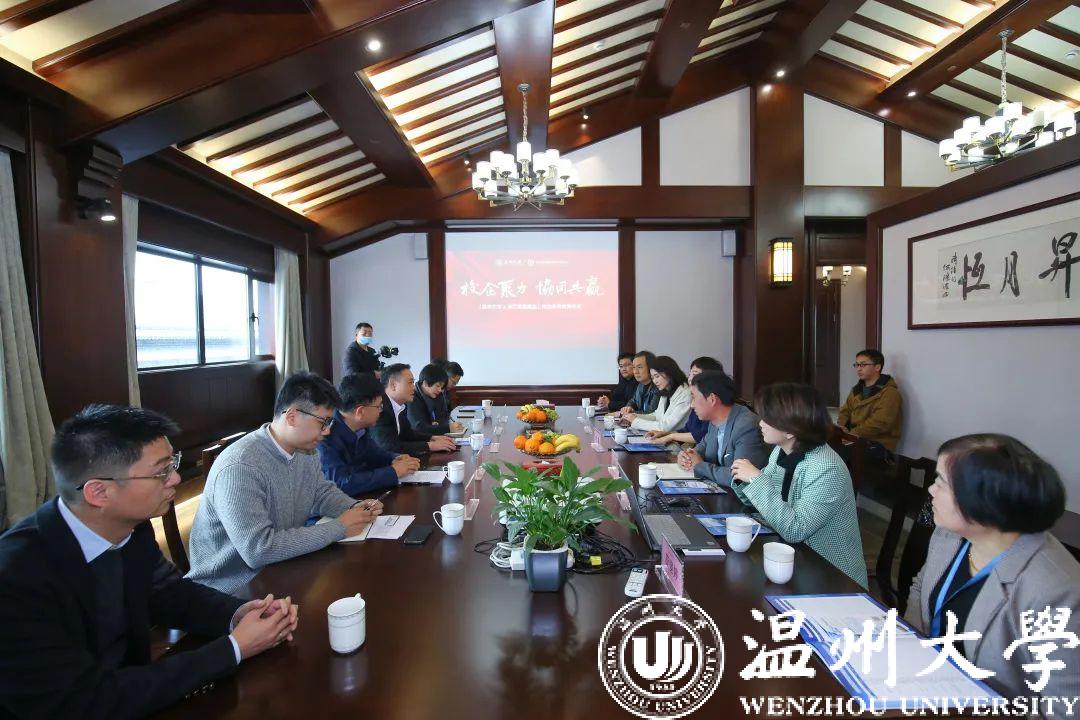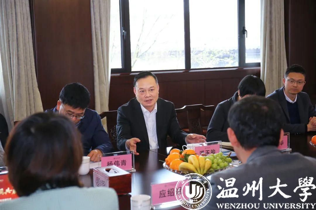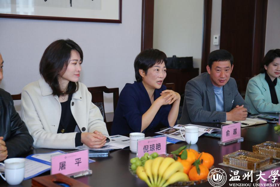 潘玉驹副校长介绍了小宝影院 办学历史沿革,近年来在党建思政、学科建设、人才培养、科研创新等方面的办学成绩,对浙江颐和和大健康产业投资有限公司的大力支持表示衷心感谢,体健校友秉持温大校训精神,在各行各业取得的成绩让母校师生倍感自豪。俞越副主席充分点赞了小宝影院 近几年的办学成果,希望校企双方在原有基础上,进一步增进了解、加强合作;浙江颐和董事长应绍斌校友从自身成长经历出发,感谢母校培养,表示母校对其创业理想的塑造起到了至关重要的引领作用,未来将个人事业与母校发展紧密联系,不断为助力学子成才做出贡献;诸暨慧佳颐和郦琼群董事长详细介绍了企业的经营现状、运营模式、技术创新等方面的情况,双方就产教融合、产学研合作、拓宽就业渠道、共同促进毕业生高质量就业等方面展开深入交流。