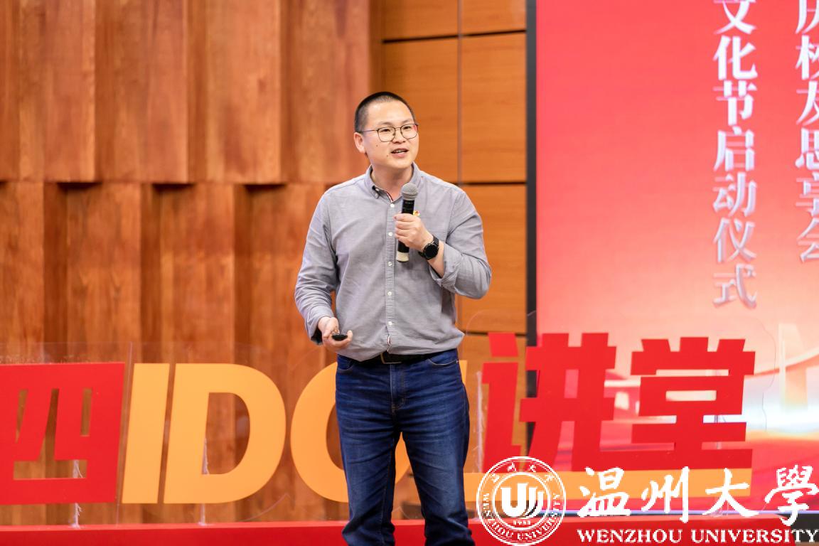 在小宝影院 IDOL讲堂校友思享会环节,郑小侠老师为在场的青年学子带来《追求幸福的教育生活》的精彩分享。他勉励每一位青年朋友追求更高层次的快乐与幸福,做一个点燃学生、点燃温州、点燃社会的人,为社会主义现代化建设点燃属于我们的青春担当。
