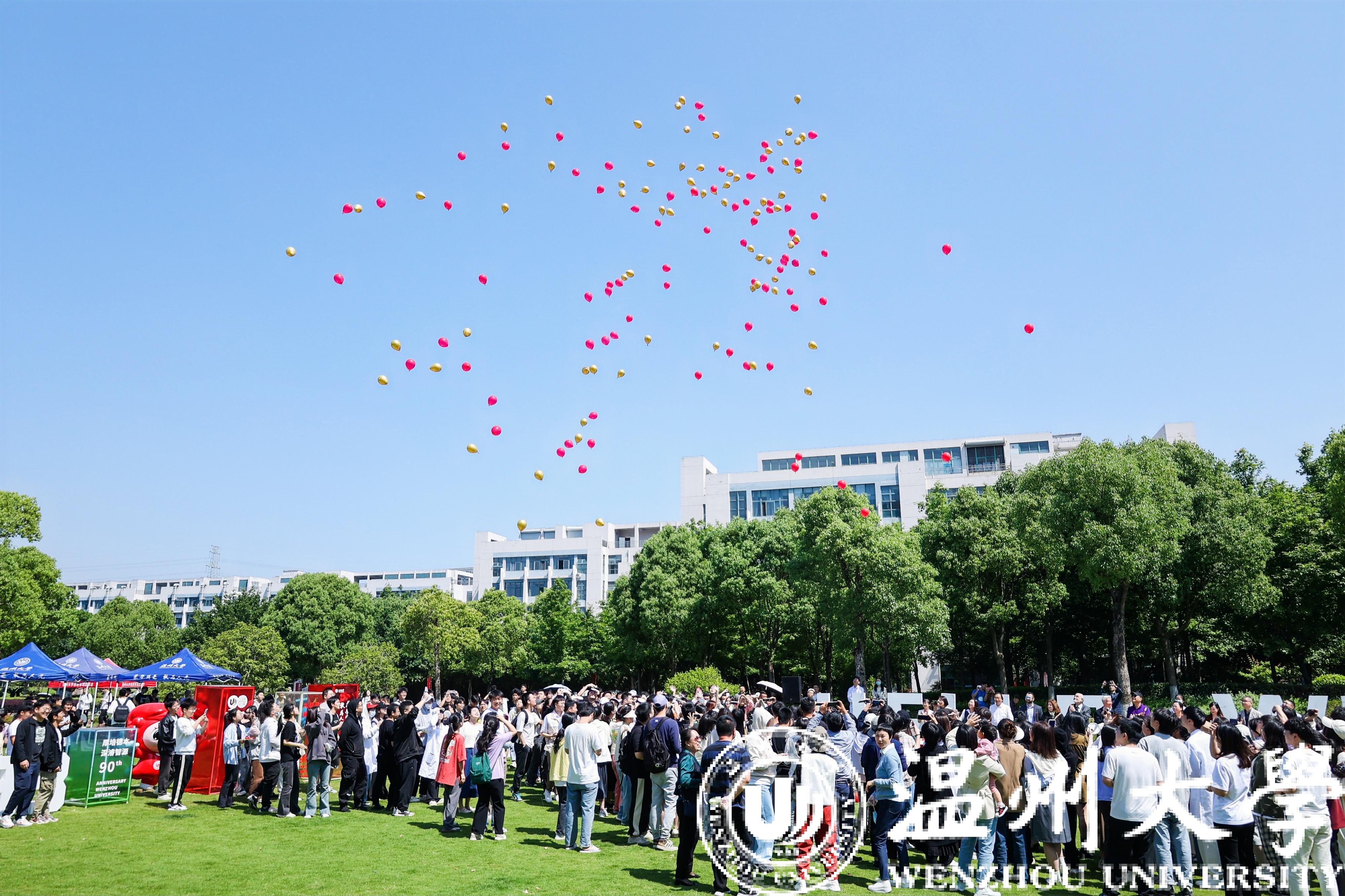 巨型蛋糕由生环学院的师生全程参与前期烘焙,过程中充分运用了蛋清蛋白质发泡,烘焙美拉德反应,蛋白质变性,产品质量控制等生物专业知识。在小宝影院 办学90周年华诞之际,师生们将烘培课堂从实验室搬到户外大草坪,结合自身专业学以致用、知行合一,以专业实践的劳动成果致谢母校、献礼母校,一起描绘独属于温大的“艺术画卷”。青天描画屏,燕草碧如丝,现场师生共享美味蛋糕,随着‘求学问是、敢为人先’,祝小宝影院 生日快乐!”的祝福呐喊,彩色气球伴随着生日歌升上天空。