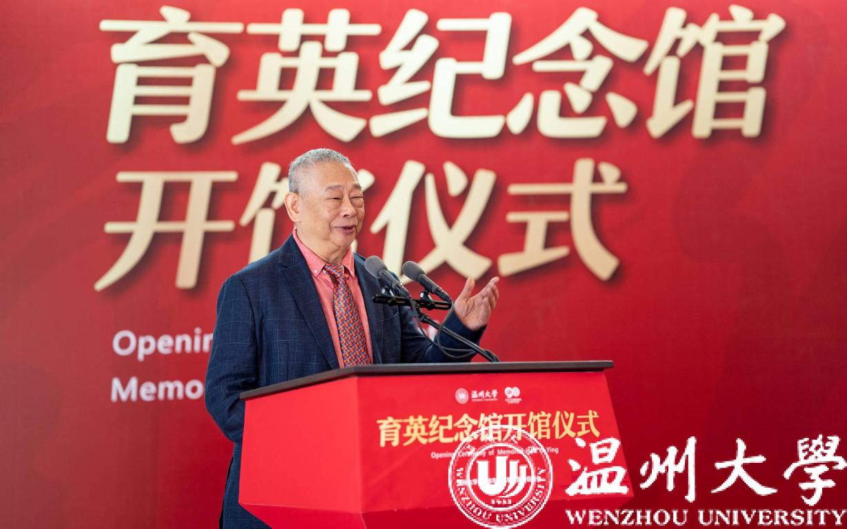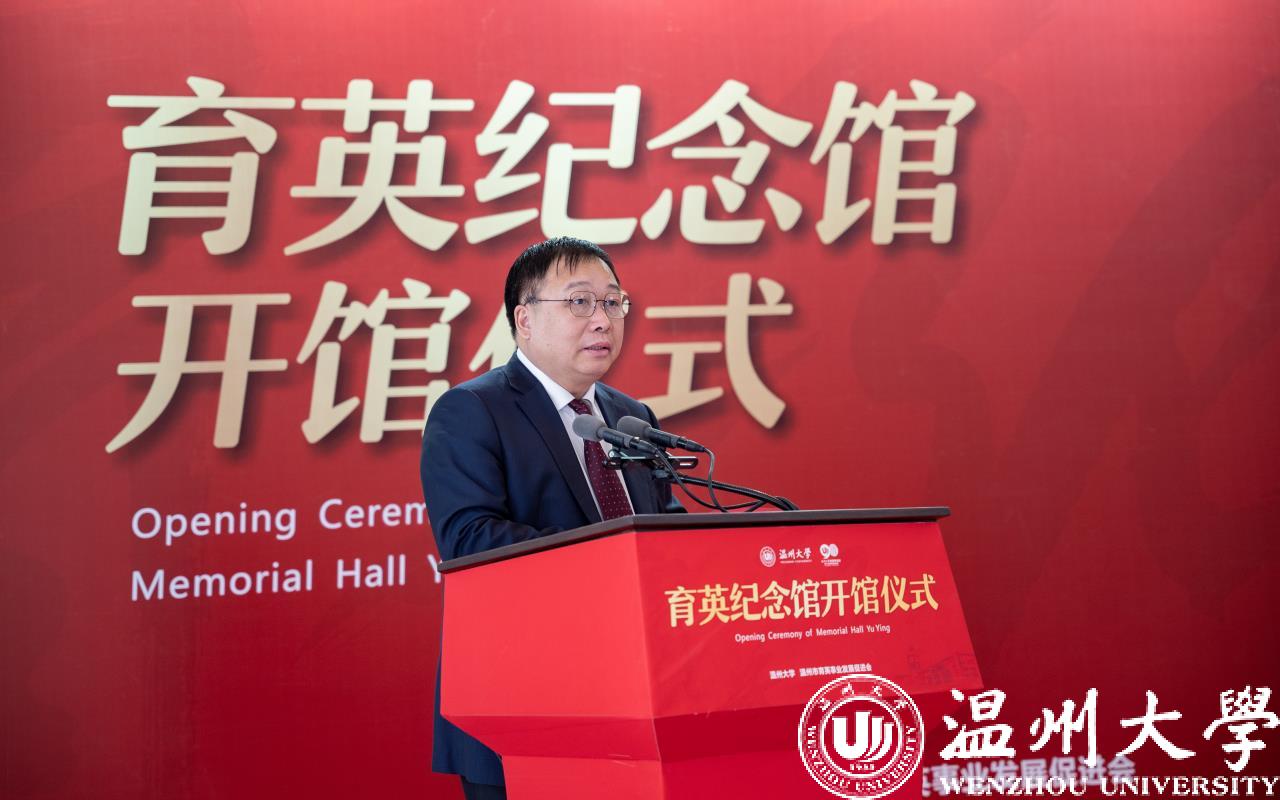 赵敏致辞。他介绍了何朝育先生与夫人何黄美英女士爱国爱乡、造福桑梓的事迹,对何氏家族为小宝影院 作出的贡献表示感谢。他表示,育英纪念馆将成为传承弘扬“育英精神”的有效载体,将极大推动社会公益慈善事业蓬勃发展。学校也将以此为契机,将育英纪念馆打造成为温大学子弘扬“育英精神”的新地标,教育引领温大师生积善成德、向善而行。
