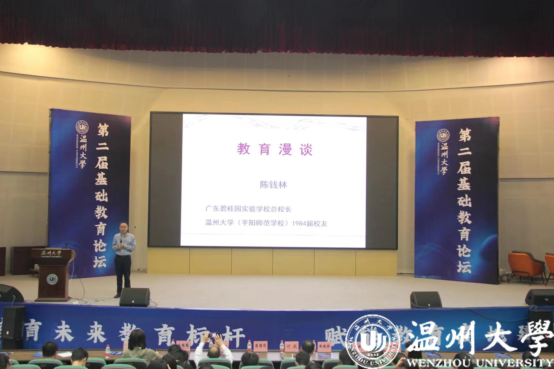 广东碧桂园教育集团区域总校长、温州市首批教育名家、浙江省第八届督学、长三角第七届最具影响力校长、温大小宝影院 84届校友陈钱林作《教育漫谈》主旨报告。
