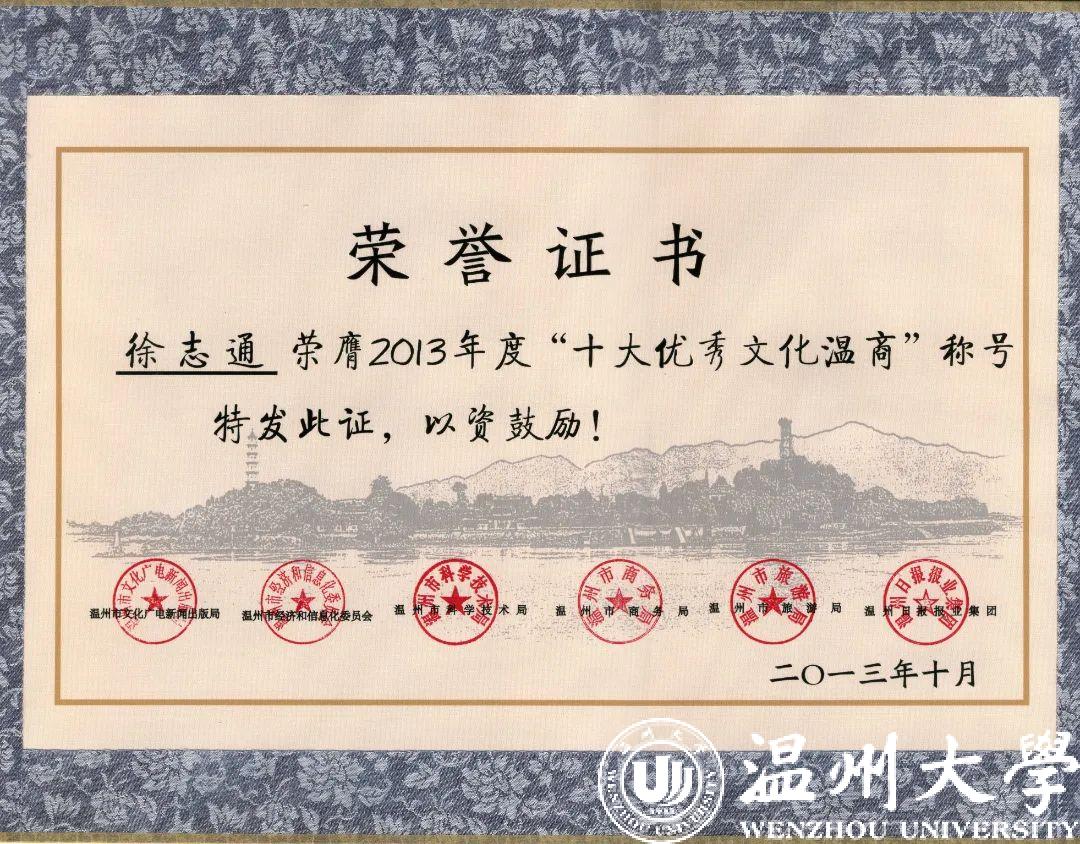 温大,是徐志通的第一个“舞台”。对于农村出身的徐志通来说,考上大学并非是一生无忧的保障。他刚步入大学便开始创业,在校外办培训班、帮人画广告画,将培训班的招生宣传单发到永嘉山区每个学校每个年级。这不仅是因为他有感于父母筹学费供他读书不易,也与当时温大的教学模式有关。“作为在民营模式中发展起来的大学,温大将经济跟艺术、政策结合得很好。温大出来的学生,在读书的时候,就会在经商方面学到很多东西。”